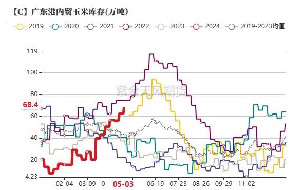 罢休5月10日当周,广东港表里贸玉米库存共计118万吨,环比上周101万吨,加多17万吨。其中,广东港内贸玉米库存共计68.4万吨,较上周加多5.90万吨;外贸库存49.2万吨,较上周加多10.60万吨。