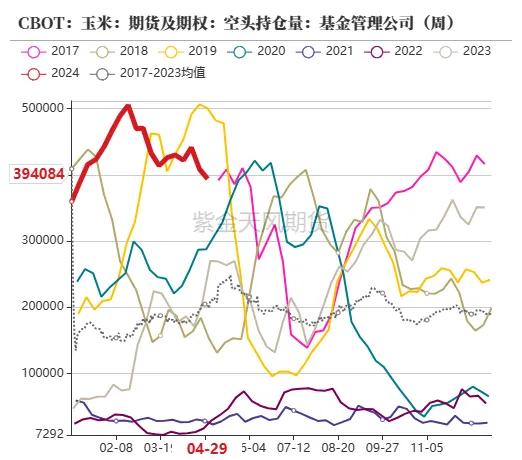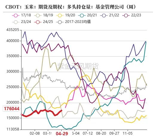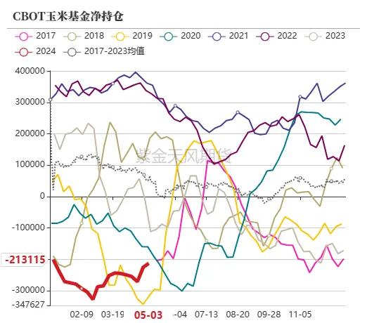 截止5月10日当周,净多握仓为-21.31万手,环比上周加多1.28万手,作念多意愿增强。当周CBOT玉米主力合约价钱最廉价454.25好意思分/蒲式耳,最高价472.00好意思分/蒲式耳。