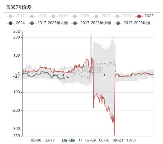 总体来看,9月为新旧玉米青黄不接工夫,旧作铺张基本罢了,新作尚无大边界收割上市,市集处于供应压力较小的工夫,且需求也处于由清淡转向隆盛的转变工夫,故9月合约价钱较7月和1月更为坚挺。且新季玉米栽植意愿的改变不会很大,跟着国度千亿斤食粮规划等战略出台,新季玉米产量瞻望仍有增产的预期,且1月份是传统卖粮岑岭期,价钱承压下降,故2407贴水2409,2409合约升水2501合约。跟着近期余粮握续铺张,供应压力减轻,同期下流需求有进一步改善的预期,故玉米近月合约价钱或仍有上行预期,79价差或有走扩预期。