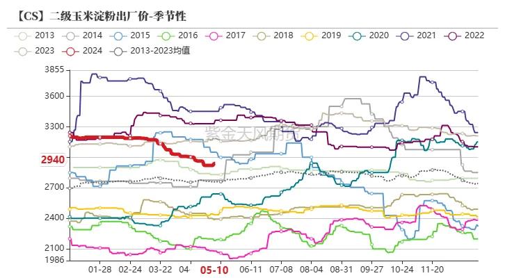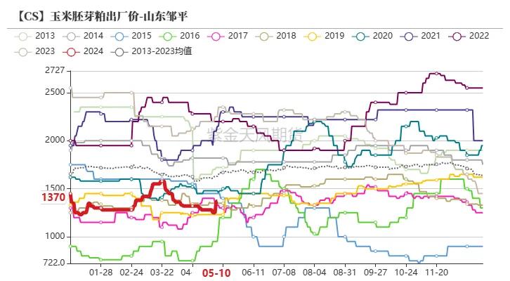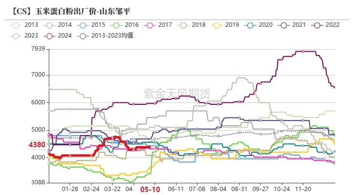 截止5月10日当周,玉米淀粉价钱2940元/吨,环比高涨20元/吨;玉米胚芽粕价钱1370元/吨,环比高涨120元/吨;玉米卵白粉价钱4380元/吨,环比握平;玉米麸皮价钱820元/吨,环比下降10元/吨。