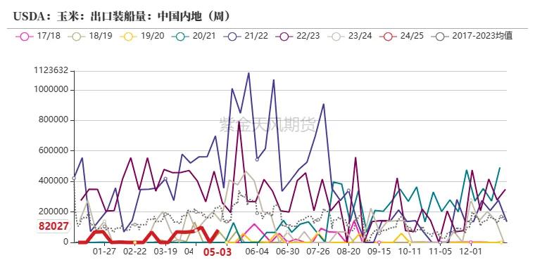 5月10日当周,好意思国2022/2023年度玉米出口装船123.1万吨,前一周为138.2万吨;好意思国对中国(大陆地区)装船玉米8.2万吨,上一周对中国装船为0万吨,环比加多8.2万吨,累计对中国销售量219.6万吨,总体处于积年出口低位。