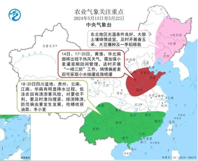 瞻望未来10天,东北地区光温条款细腻,大部泥土墒情相宜,征象条款总体利于春玉米播撒出苗。14日、17-20日,黄淮、华北南部将出现干炎风天气,对小麦灌浆闲静不利。