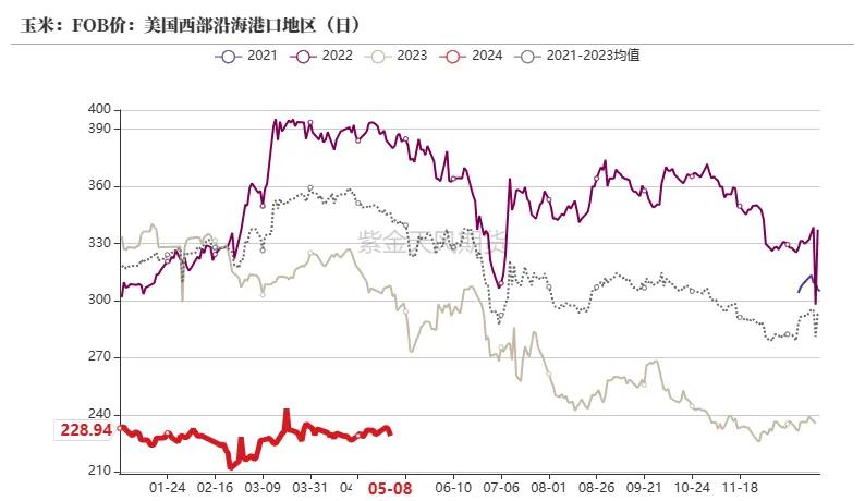 上周,寰宇玉米周均价2333元/吨,环比高涨2元/吨。东北产区购销僵握,深加工企业考研加多,且到货以条约粮为主,饲料企业保管安全库存,需求暂无彰着提振。五一时代华北玉米价钱快速高涨,假期之后保管区间内窄幅调遣的样式,跟着余粮减少和市集心态好转,6月份麦收之前营业商腾库的供应压力彰着缩小。销区沿海、沿江地域受期货盘面拉涨,营业商报价情怀增强,报价高涨幅度较大,周内平均上调40-50元/吨。