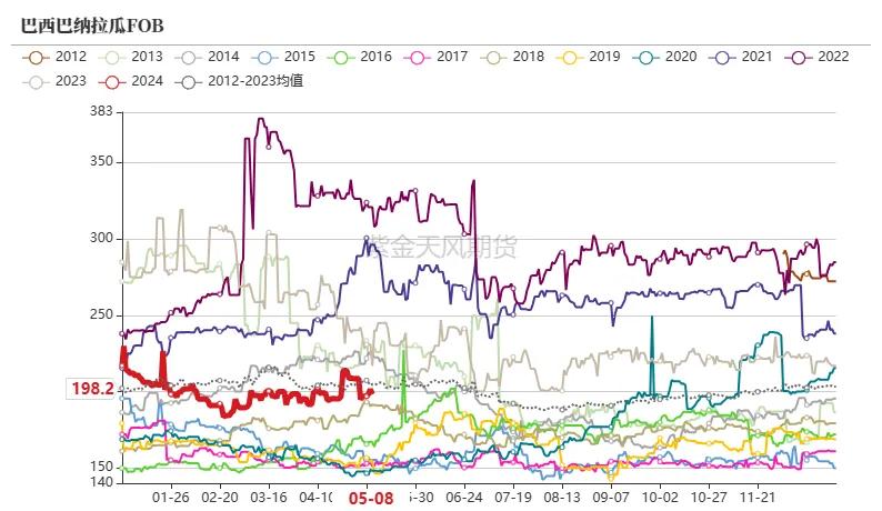 产地情况:偏多 乌克兰农业部称,罢休5月10日,2023/24年度(始于7月)乌克兰玉米出口量可能降至2000万吨到2100万吨,低于2023/24年度的2700万吨。上周巴西玉米主产区气温距平值偏高,中部地区降水与往年收支不大,南部地区降水较多。本周瞻望巴西玉米主产区气温依旧偏高,南里奥格兰德州降水依旧较多,但巴西中部玉米主产州干旱情况或将握续,不利于当地二茬玉米的滋长发育。巴西23/24年度一茬玉米收成率63.1%,二茬玉米播撒率100%。好意思国农业部发布的作物进展论述清爽,罢休5月10日,好意思国玉米播撒职责完成了36%,上年同期为42%,五年平均程度为39%。