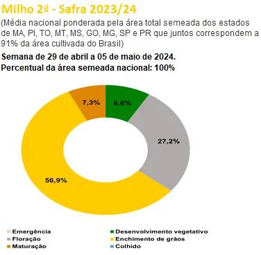按GO、PI、TO、SP、MG、MA、MS、MT和PR等州播撒总面积加权的寰宇平均水平来看,巴西一茬玉米着花部分占到了0.4%,灌浆阶段占到了7.6%,纯熟部分占到了28.9%,收成部分占到了63.1%。二茬玉米养分发育阶段占比8.6%,着花部分占到了27.2%,灌浆阶段占到了56.9%,纯熟部分占到了7.3%。